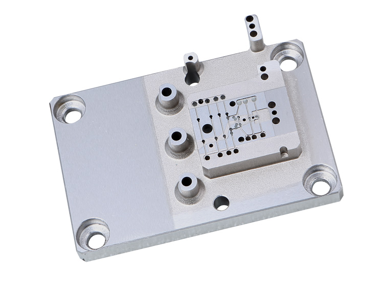 ![]() 1.產(chǎn)品名稱:模具 2.材料:SUS316L 3.主要工藝:CNC 4.技術(shù)難點(diǎn):21個(gè)孔位公差±0.005mm,孔內(nèi)粗糙度Ra0.1-0.2,且不能有劃痕 | 2.材料:白色PET 3.主要工藝:CNC 4.技術(shù)難點(diǎn):φ1.4孔公差+0.02mm,深度20.8mm,公差-0.03mm,位置度±0.01 | ![]() 2.材料:SUS316 3.主要工藝:數(shù)車、四軸CNC 4.技術(shù)難點(diǎn):內(nèi)孔及頭部外圓同軸度0.03 |