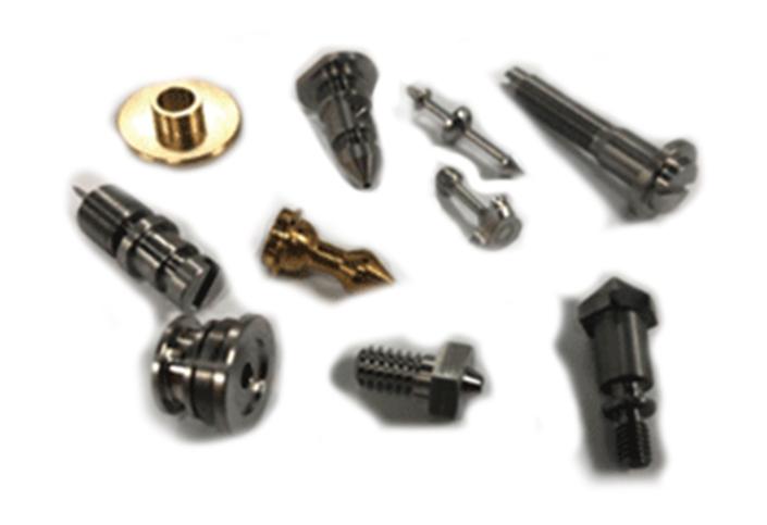 ![]() 產(chǎn)品名:E-驅(qū)動(dòng)架 材料:鈦合金 主要工藝:CNC、平磨、慢走絲 技術(shù)難點(diǎn): --多層薄片架變形控制難度大,平面度0.01mm; -- 各層薄片架位置精度±0.015mm; | ![]() 產(chǎn)品名: 銷釘/閥芯螺絲類小零件 材 料:不銹鋼、鋁/銅合金 主要工藝:自動(dòng)車床 技術(shù)難點(diǎn): --多軸自動(dòng)車床批量加工,精度0.005mm | 產(chǎn)品名:沖壓模-沖頭 材料:CD650鎢鋼 主要工藝:平磨、慢走絲、拋光 技術(shù)難點(diǎn): --尺寸及形位公差精度0.003mm; --沖頭成型部位拋光Ra0.05 |