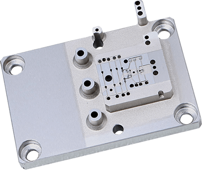 產(chǎn)品名:HGA彈性臂壓塊 材 料:440C或CD650鎢鋼 主要工藝:電火花,慢走絲、平磨 技術(shù)難點(diǎn): --零件尺寸小而幾何尺寸/形位公差精度極精; --所有精孔尺寸/位置精度0.003mm由慢走絲/鏜磨加工; --頂部十余處電火花加工異型淺槽輪廓/深度公差0.003mm --整體金剛石涂層 | 產(chǎn)品名:PZT載板 材料: Al 6061-T6 主要工藝:CNC 技術(shù)難點(diǎn): --所有120控制孔徑公差0.005mm以及位置度公差0.005mm. --硬質(zhì)黑色氧化處理后保證整體平面度0.02mm以內(nèi)。 | ![]() 產(chǎn)品名:集成安裝盒 材料:AL6061 主要工藝:CNC,硬黑氧化+化學(xué)轉(zhuǎn)化膜 技術(shù)難點(diǎn): -- CNC多軸加工;六面平面度、平行度、垂直度全部0.005~0.01mm; --三面精孔位置度0.01以內(nèi); --近300處尺寸由CNC多次/多面加工/CMM三坐標(biāo)測(cè)量確保。 |
